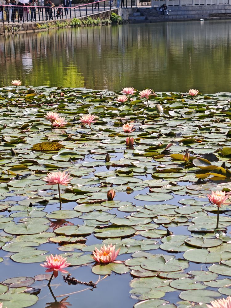 这里的睡莲是粉色的。?
