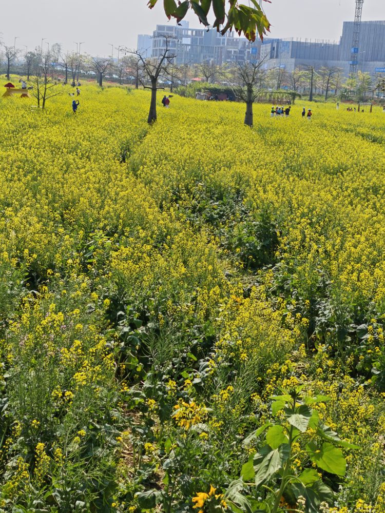 我住的附近有一大片供人观赏的油菜花,有七彩的,也有黄色的,大片大片的,里面夹杂着向日葵,煞是美丽。每天都有很多从广州各处赶来赏花的人 – 有些是有组织的,带着专业摄影师;有些是搞自媒体的,驾着设备在那里直播呢,也有些就是三两好友结伴出游,到处都是穿得花枝招展得男女老幼。要拍一张没有路人或者人少的照片还是有点困难的。