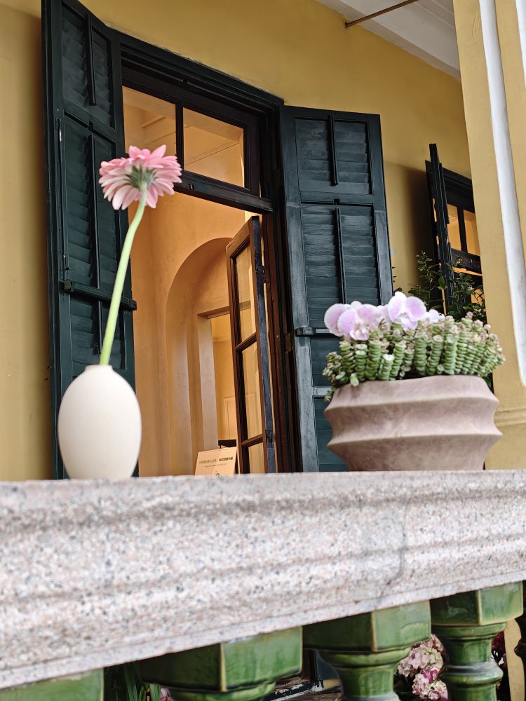 三角梅的空隙看对面的仿古建筑,比照片上漂亮多了!?