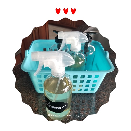 水盆下方,因为管子太多,我添了一个简单的储物架,两层增加空间。今年我的目标就是Chemical Free, 将逐步淘汰家里现有含化学物质的日用品。小图即为所有的洗涤用品瓶子均换成玻璃瓶。