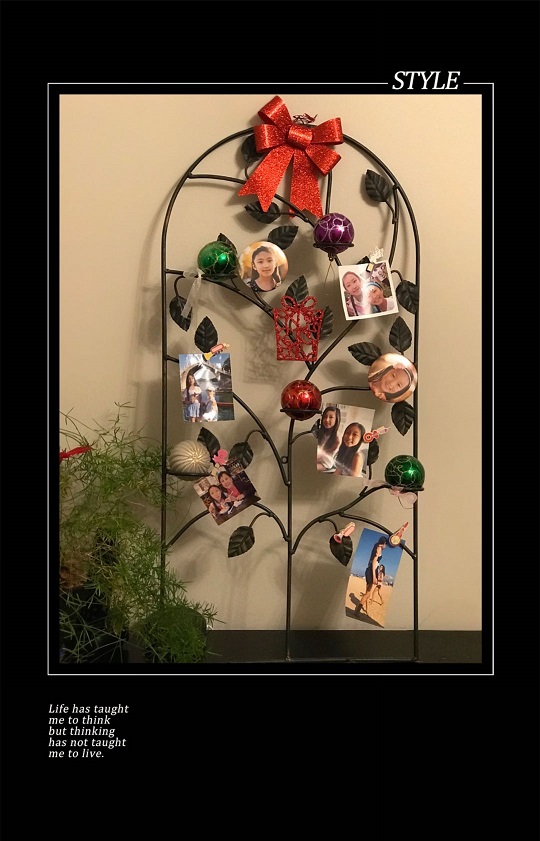 3、圣诞期间,做一个family photos display. 可以把一家人每年的圣诞照片放在这里,也可以把一家人一年的旅游照片展示出来,每一张图片都是一段故事,一份回忆! 我把多年不用的烛台架搬出来,打印了几张孩子们的照片。