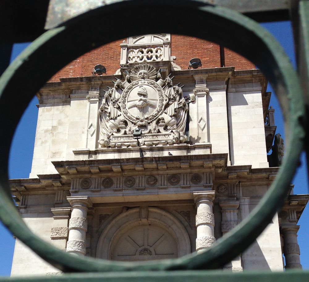 -塔上的阿根廷国徽,这里 用做展览大厅,80年代家门口跟英国人争夺马尔维纳斯群岛,没打赢, 这里也跟着衰落了。
