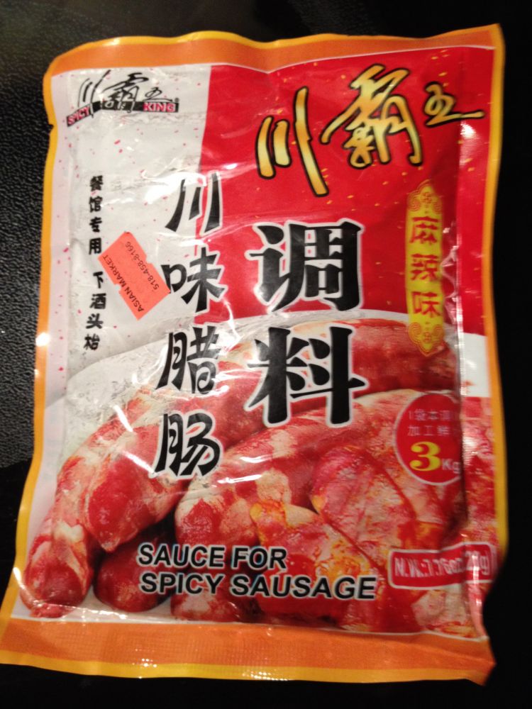 成品还没成熟,借个邮购来的川味香肠照片,比自己做的差不是一个级别,瞧那肥肉就恐怖。