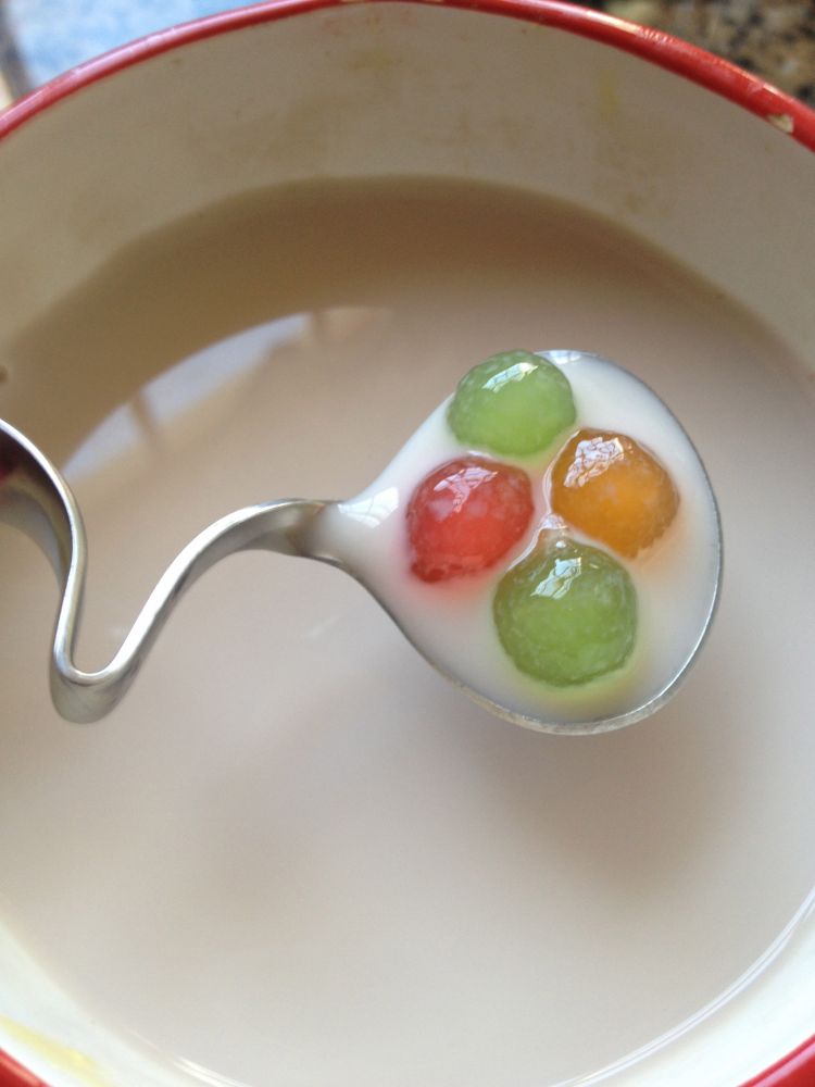 相信这蜂巢,是小珍珠丸子,开水里煮闷5-6分钟,倒入冷水冰镇