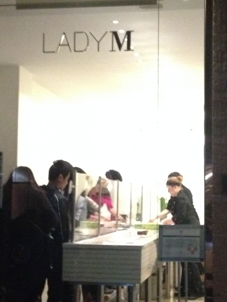 Lady M Boutiques 1W, 59th店在马路对面,地下室的Confections,女儿坚持跑了曼哈顿两家店,才把他家的镇宅千层蛋糕mille Crepes买齐全。中央公园南门大街,流光溢彩的雨夜。