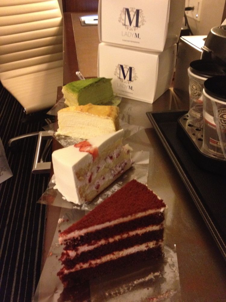 换个角度再拍,还有什么比这个Lady M 蛋糕更显摆,更矫情,更开心,更甜蜜的圣诞夜呢?孩子们还在外面看三小时行走纽约灯光show,我在华尔街的Double Tree Hotel, 圣诞折扣到$119/天。看着蛋糕MM,口水几乎等不及他们回来地流啊。