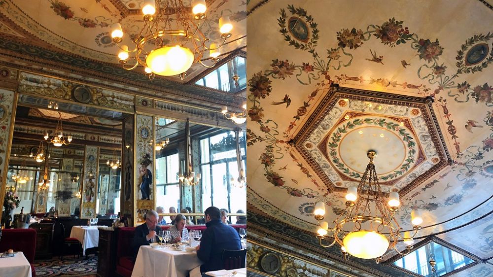 这家餐厅有着近两百年的历史,前身是成立于1784年的夏特尔咖啡馆。餐厅还保留着两百年前的装修风格,玻璃面内的手绘油画和天花板上精致的花鸟图案,宣告着餐厅曾经的荣耀。