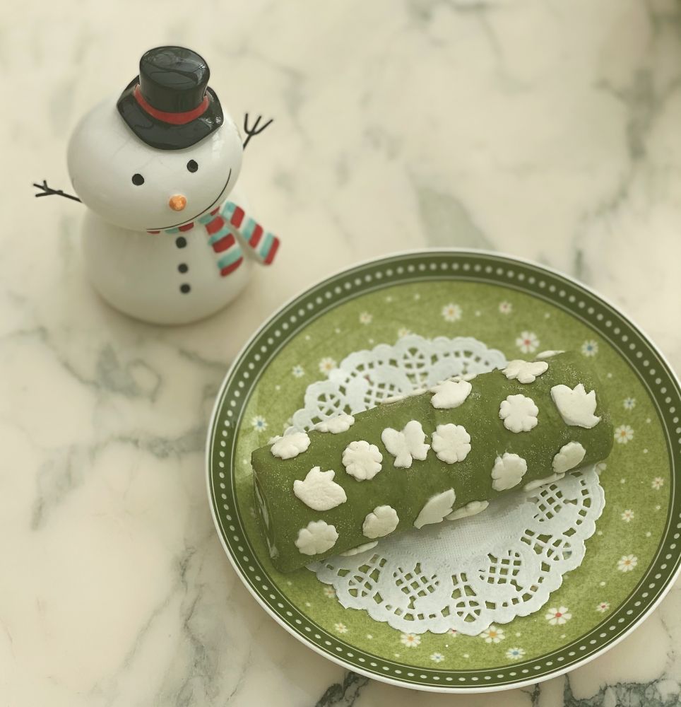 这是抹茶馒头的生胚,上面的点缀是奶油裱花嘴压制出来的。