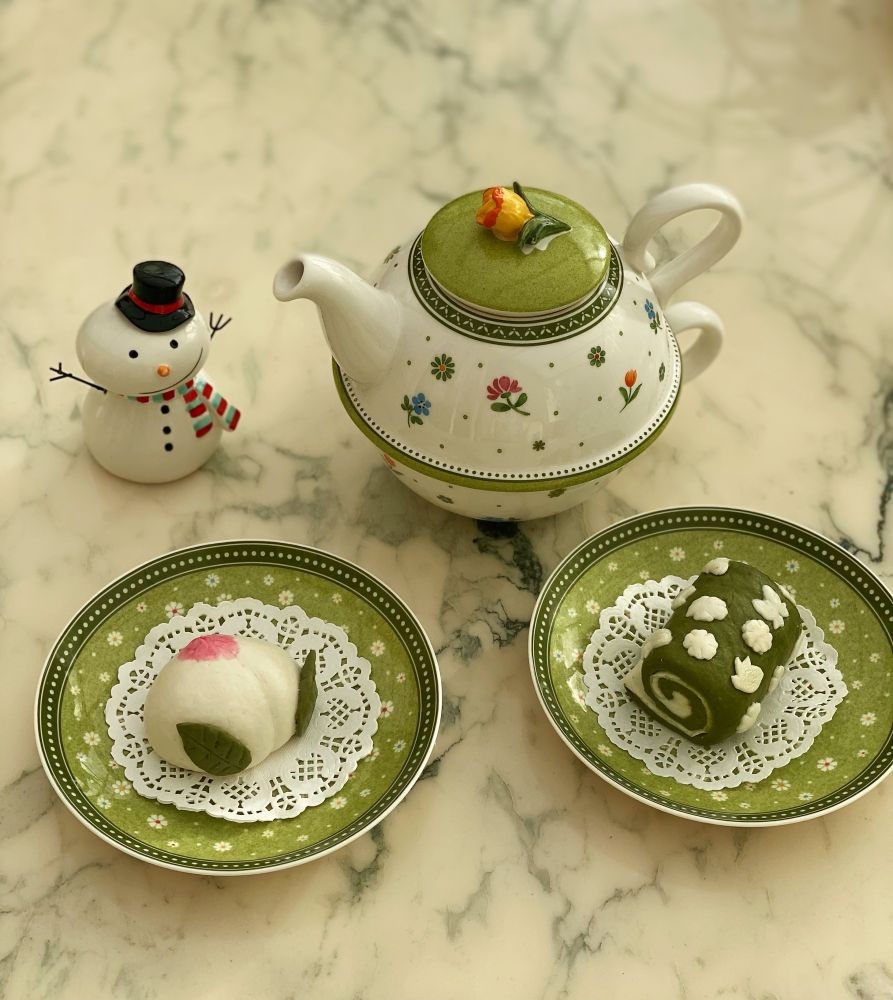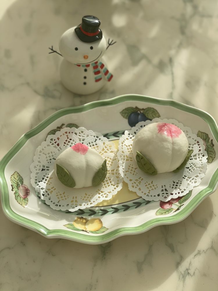 自己做的寿桃和抹茶馒头,小巧精致,成就感十足。