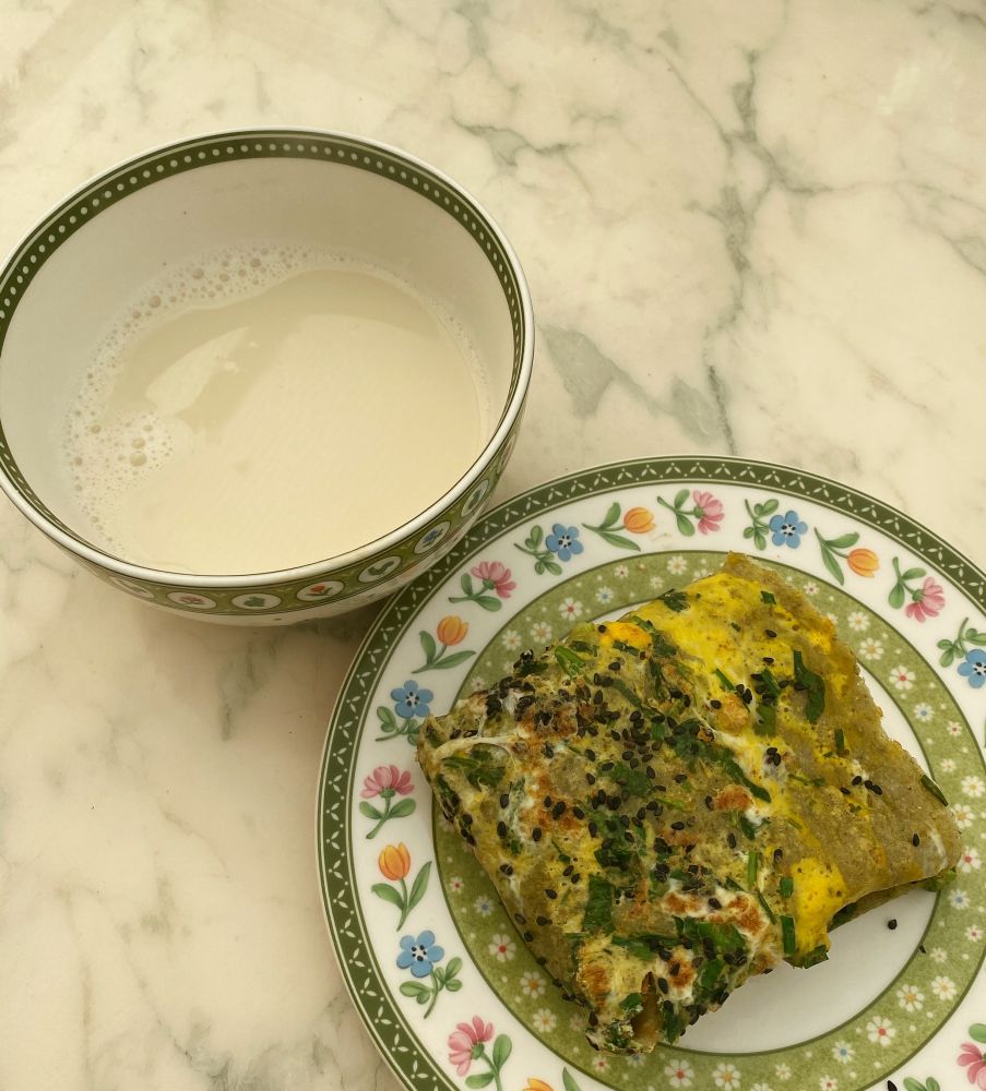 因为还打了豆浆,所以把黄豆渣也兑进了一些。