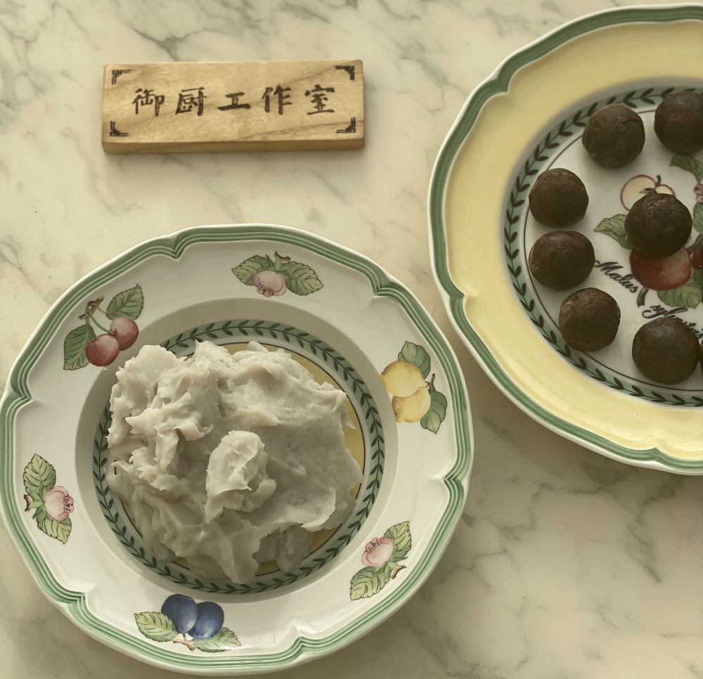 图中用量是300克山药泥,80克糯米粉,100克木薯粉。