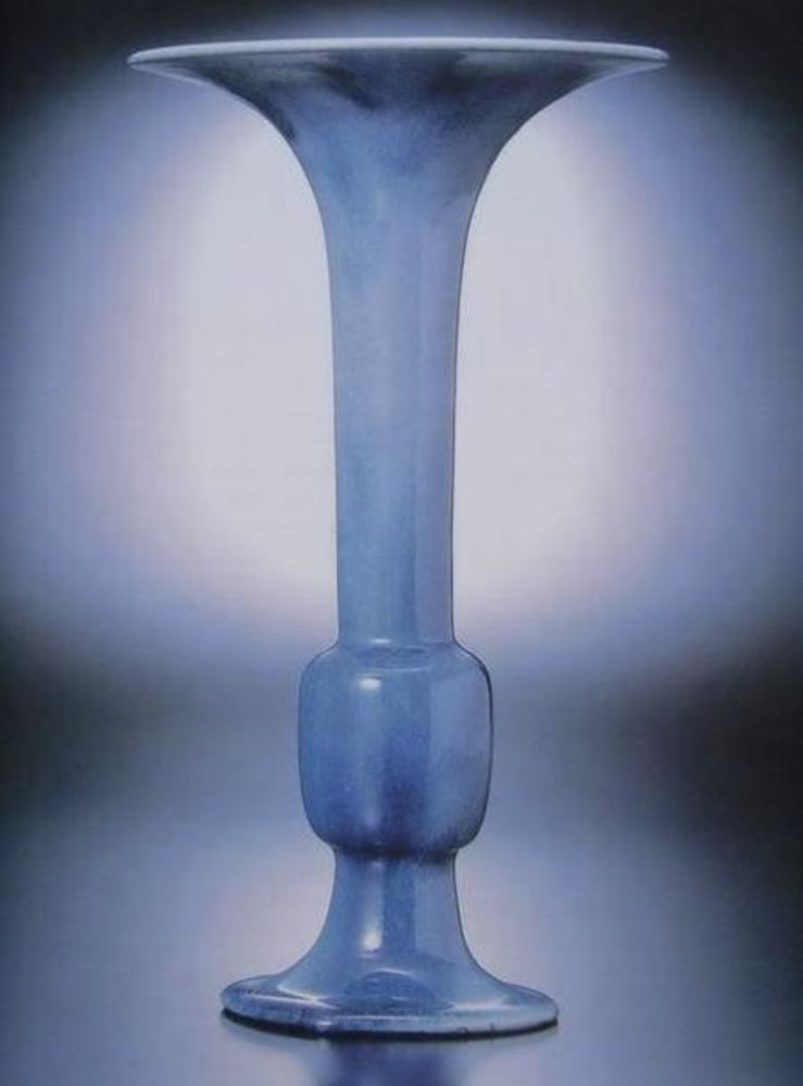 柴窑天青首先应该是青瓷,这件蓝色花觚一点都看不到书中所写“色正碧,流光四溢”之感。