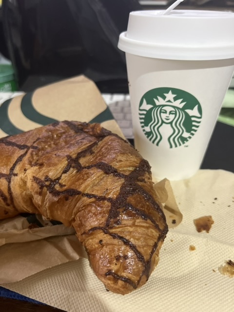 早上喝着外卖的星巴克和法国酥角面包,码几行小字。
