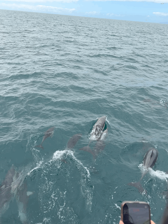 不过,看鲸鱼还得靠运气, 天气不好船就不开。好在我们今天刚好遇上了一个大晴天。 真正出海之后才发现,拍鲸鱼真的太难了。船在海上开了很久才终于遇到鲸鱼,而鲸鱼每次浮出水面只有短短几秒,速度又特别快,根本来不及同时拍视频和照片。我只拍到了鲸鱼喷水的视频,而船上的专业摄影师帮我们抓拍到了鲸鱼跃出水面的瞬间。 这一趟,总算圆了看鲸鱼的愿望。