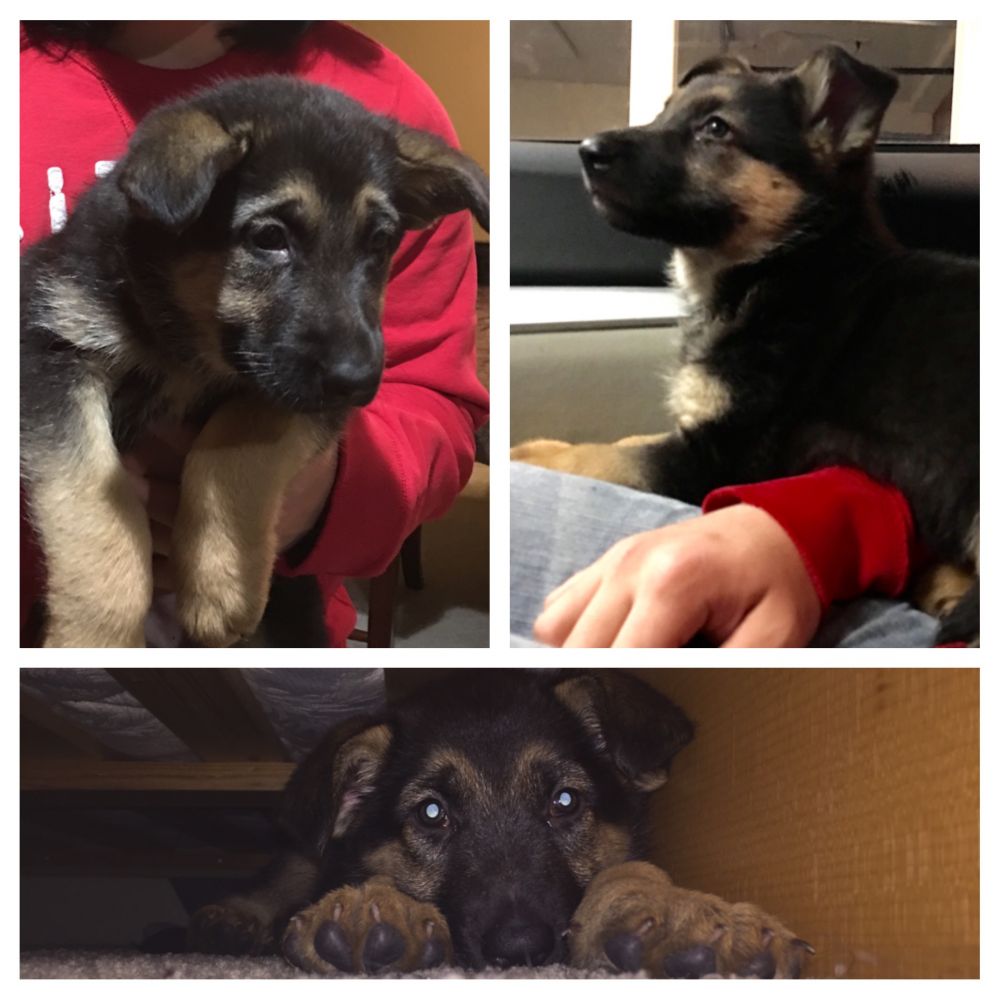 我们家三丫昨天刚满七周,breeder说已经断奶了,所以兴高采烈地提前把她带回家。今天和家里老三放到一起,相处还不错。