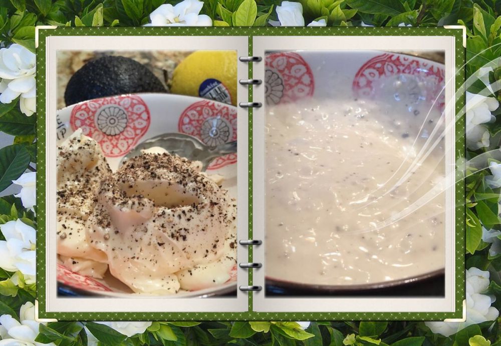 沙拉酱是半杯蛋黄酱,加适量黑胡椒粉,然后用鲜榨柠檬汁调匀调稀蛋黄酱就可以了。吃之前,和沙拉一起拌好。