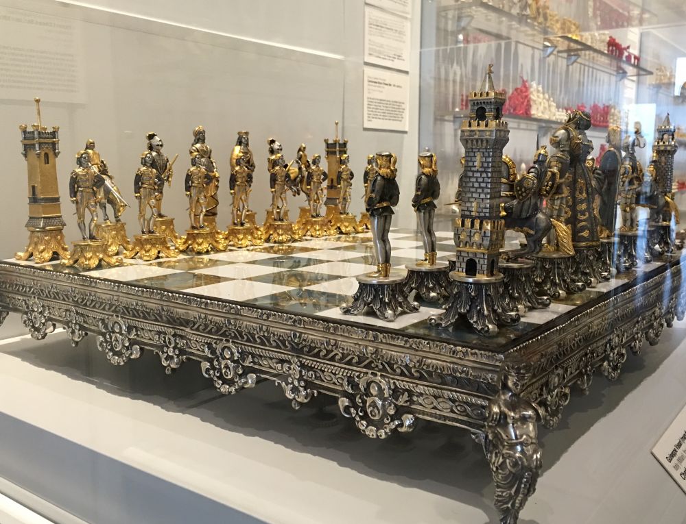 l博物馆另外一个让人意外的是国际象棋的收藏。国际象棋的棋子其实就是雕塑作品。这一架上可以比较一下现代和传统风格的不同。