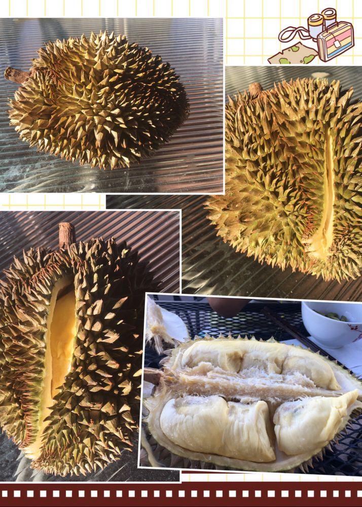 自己以前从来没有开过榴莲,都是买现成。上周去中国店突发奇想买了一个整的回来。店员正好是马来西亚华侨,说自己以前一人一次吃掉一个都没问题,想不上火的诀窍是用榴莲壳装水喝。榴莲其实是像橘子里面一样,是一瓣瓣的,在顶尖上汇合。开的时候,在顶上找到逢轻轻放开就好了,然后再一瓣一瓣分开,要用点力气,但是远没有想象的那么吓人。每瓣里有三大块榴莲。吃不完的放冰箱冷藏或冷冻都可以。不影响味道。事实上,超市里的榴莲常常是整个冷冻的,吃之前要先化冻几小时到一天时间。