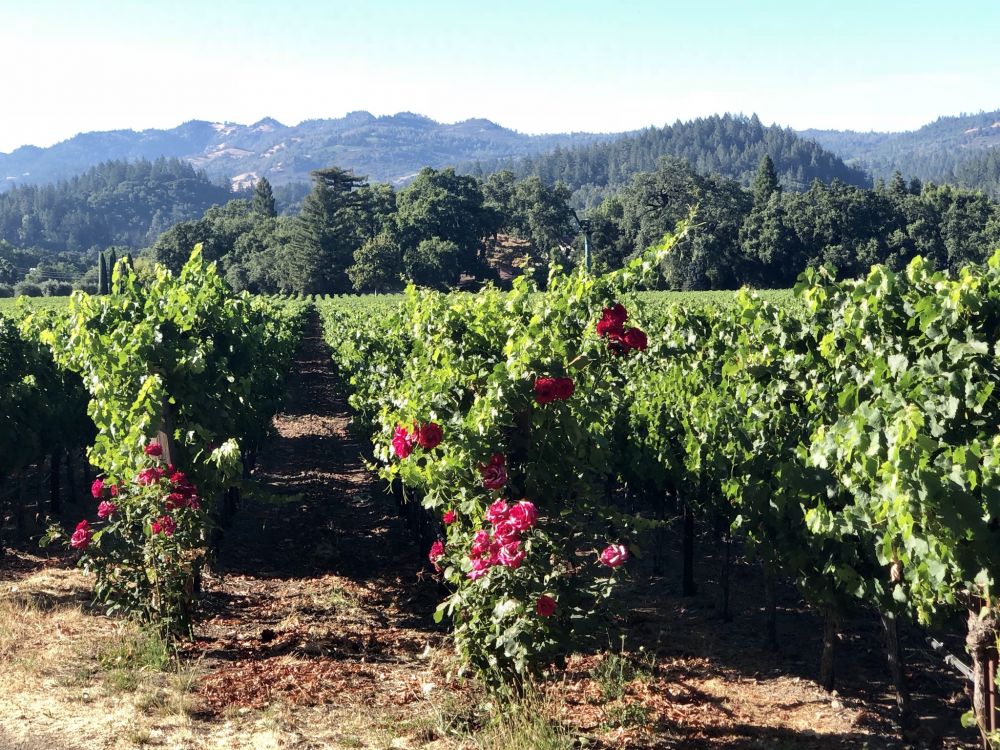 娇艳的玫瑰让葡萄园充满更多情趣和浪漫。