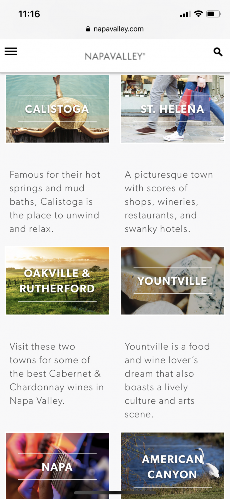 Napa Valley是沿着napa river的几个小镇组成的,下图里可以看到几个镇的名字和简介.有兴趣的可以去网站浏览,里面囊括了napa地区几百个酒庄的简介。