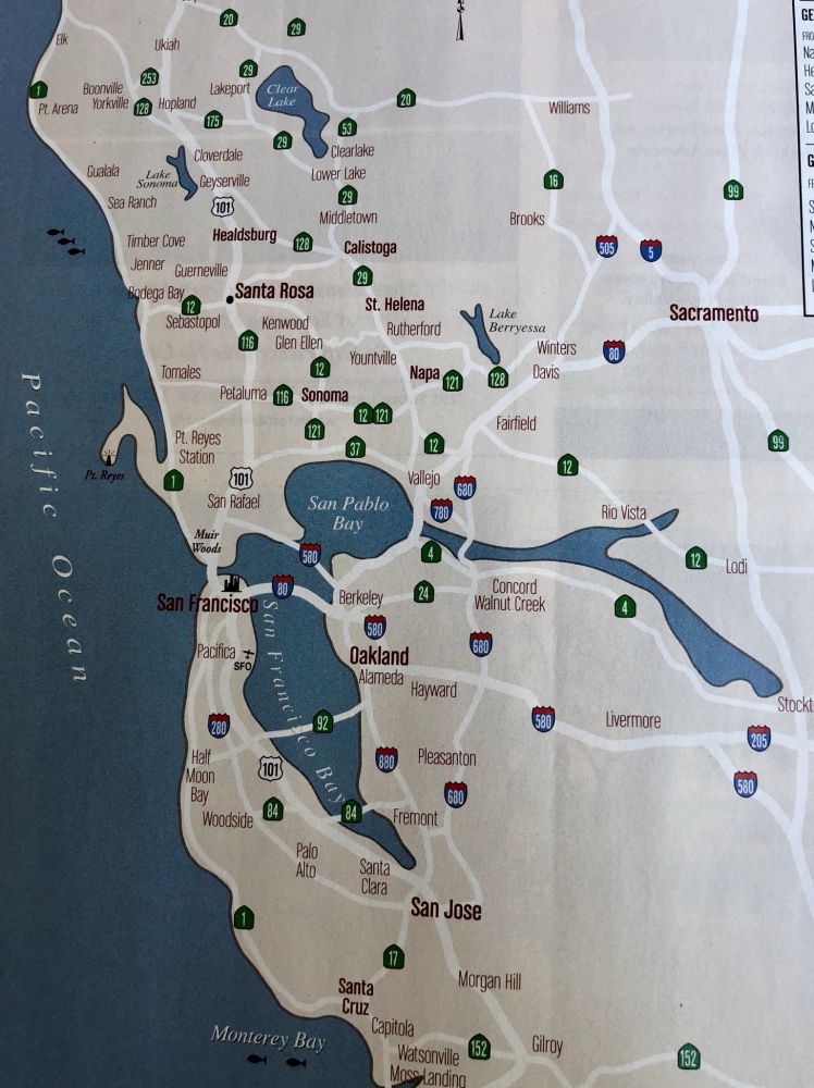 这张图里可以看到每个镇大概的地理位置和他们与湾区的关系。Napa valley在Santa roza有一个机场,外地想来的也可以坐飞机到旧金山,Sacramento,oakland,然后开车过来。