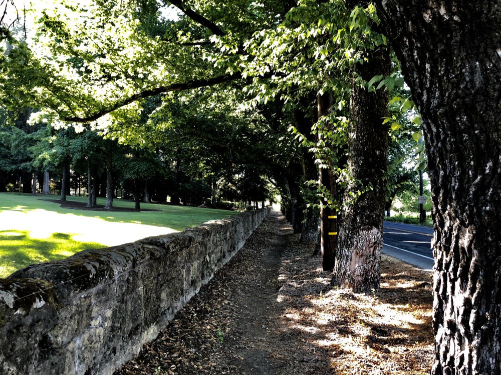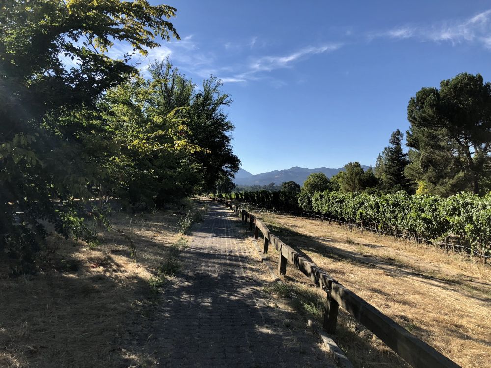 酒庄的石头围墙和老树,以及墙外的小径,从这个小径,我慢慢走入napa的艳阳,经过对面的Charles Krug酒庄的葡萄园,走到了美国烹饪学院。