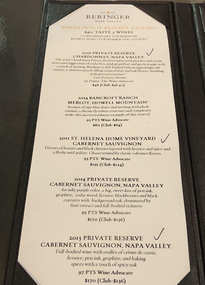 品酒单。我试了三个reserve的酒。也许是人生经验还不够丰富,品酒还是刚入门,too sophisticated 的酒我却享受不了。继续熏陶。