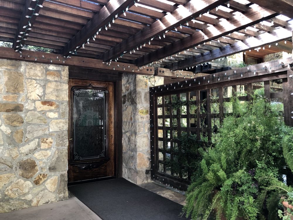 品酒屋的入口和爬藤架。