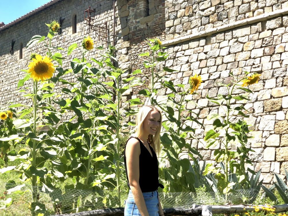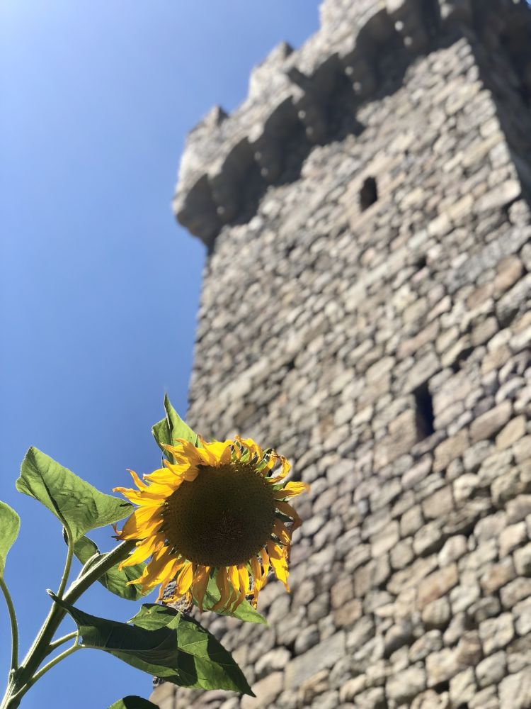 napa的另一个标志,石墙下的向日葵