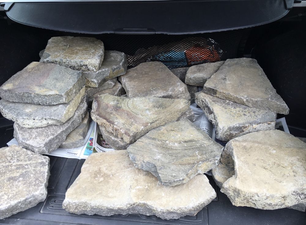 和女儿拉回来几吨片石,具体忘了是几吨。当时做了一个估算,买东西的人还安慰我们,你们要是不够,可以再来,只要是同一个project,价格都给你一样的。因为买的量越大越便宜。