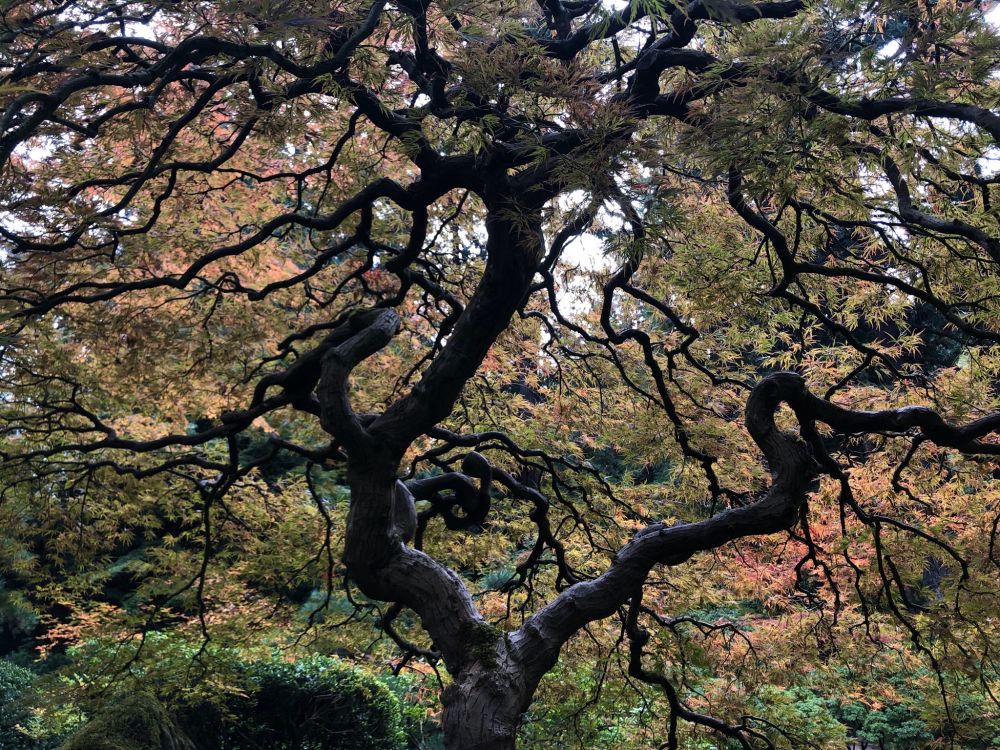 花园里的著名日本枫树。每年秋天都有很多摄影发烧友,一次次的去看它,扑捉最佳的色彩和光线。照片上看,它是那么美轮美奂高大威严。其实,它只是一棵6,7个英尺长宽的日本枫树,不过,它的枝干蜿蜿蜒蜒很富有戏剧观。如果你去花园,看到有一棵矮树下,地上爬了很多拿长镜头的人,那就是它了。