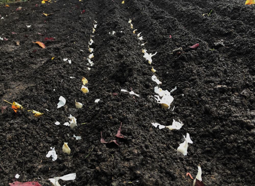 两星期前,我说要种蒜,领导把一片地帮我清理平整出来,昨天冒着阵雨抽空种了大蒜,自己还挺自豪的,结果朋友们都说自家的已经长苗了,高的都有十来公分了。