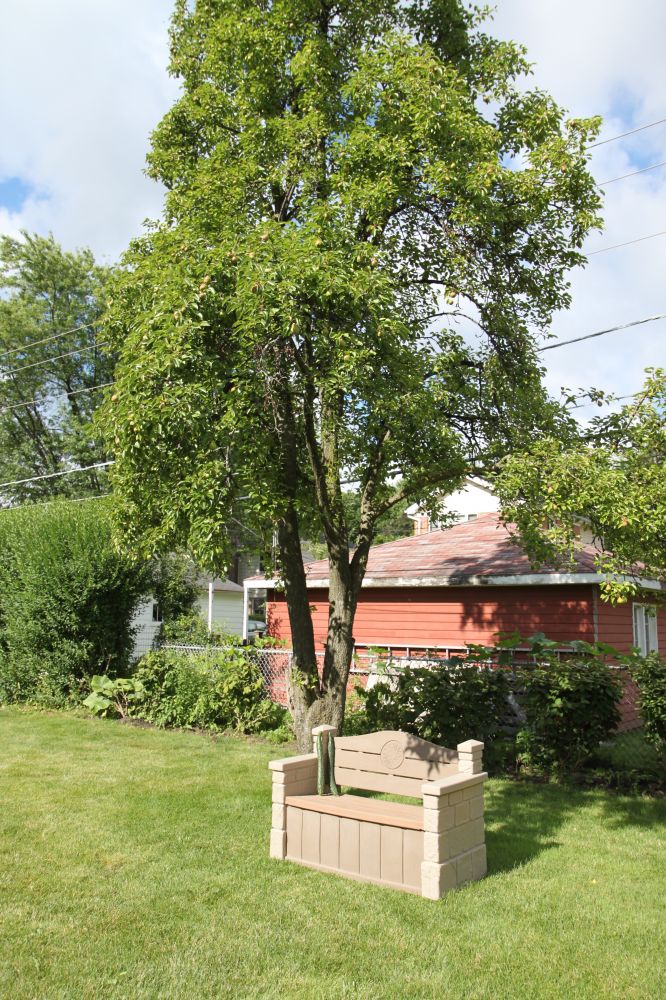 先看看我们的梨树结果的样子。梨有点小,但成熟后味道不错的说。我们后来都吃不完,做了很多的梨酱。