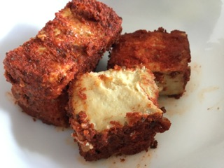 把长了白毛的豆腐块在高度白酒里面滚一下,再裹一层辣椒面、花椒面、盐的混合物,装进密封的瓶子或泡菜坛,大约10天就可以吃了。