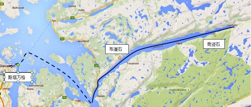 挪威最著名的三大岩石中两块就在吕瑟峡湾(见地图)。游轮从斯塔万格出发来回。在游轮向上可以看到布到石,但是看不到奇迹石。