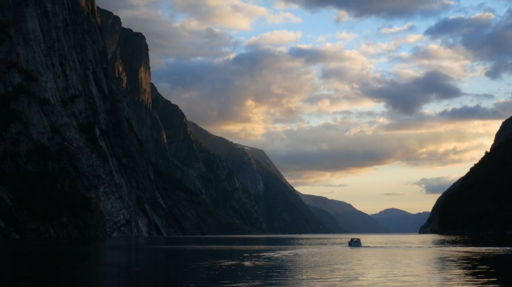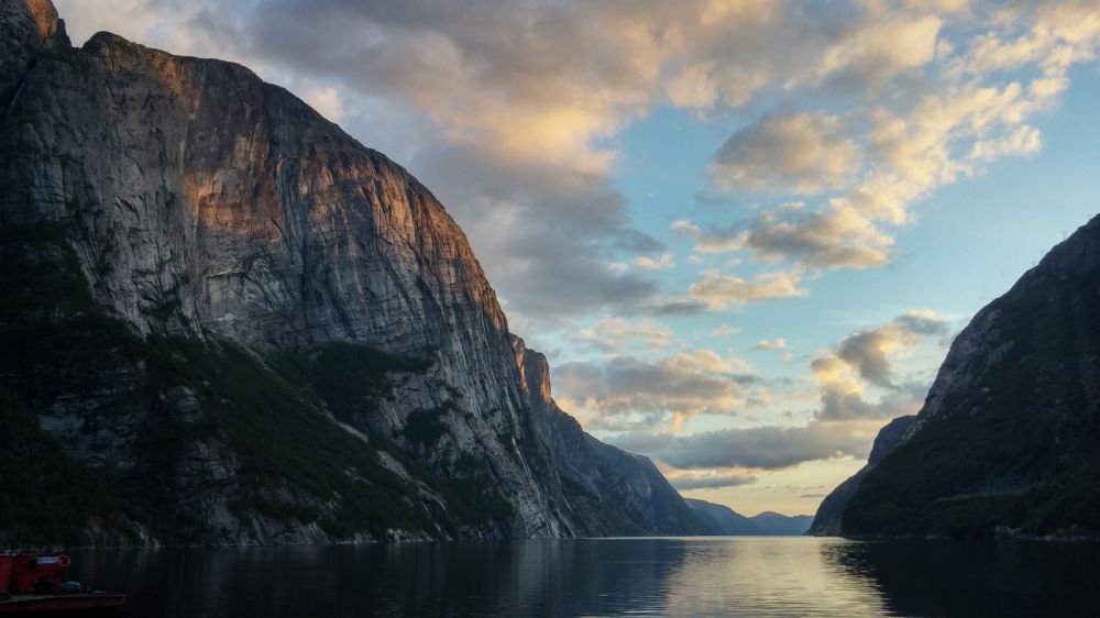 吕瑟峡湾位于挪威南部,全长42公里。吕瑟峡湾的入口是挪威西海岸的斯塔万格。河水在凸兀的峭壁和巍峨的群山之间蜿蜒流淌。吕瑟峡湾远离大海,深入内陆,这里没有大海的波涛和汹涌,只有高山悬崖在峡湾中的倒影。