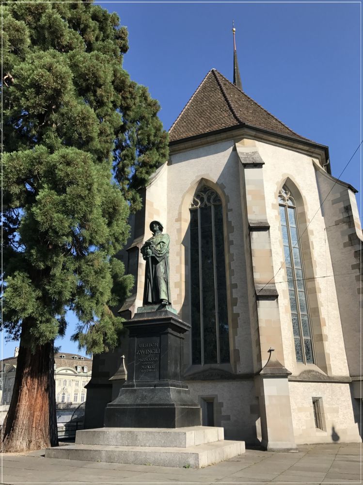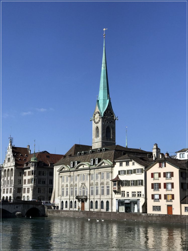 Kloster Fraumünster 苏黎世圣母大教堂(左):这是一座日耳曼国王鲁道夫2世在853年以女子修道院的名义修建的教堂,12-15世纪被重修为哥特式风格,钟塔是在1732年之后才搭建上去的。