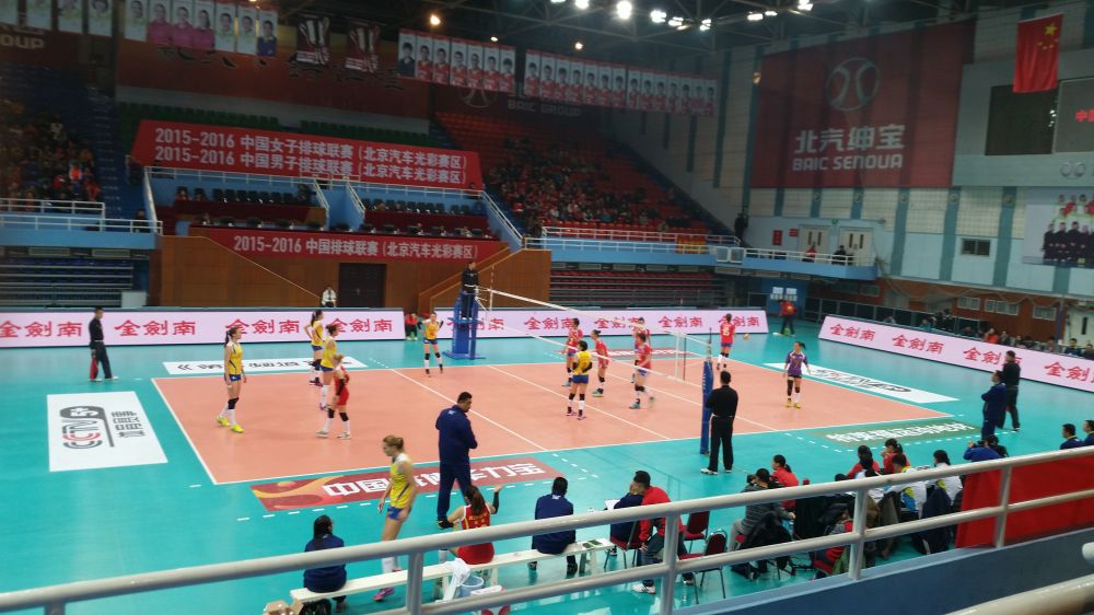 在北京的时间虽然只有两周,但很幸运地此次回国期间正好赶上2015-2016年全国男女排甲级联赛。11月28号那天,是北京女排主场对阵浙江女排的比赛,和老妈一起早早就赶到了光彩体育馆,她先进去北京队那边找人聊天去了,我自己买了票,找到一个前排的座位坐下了。