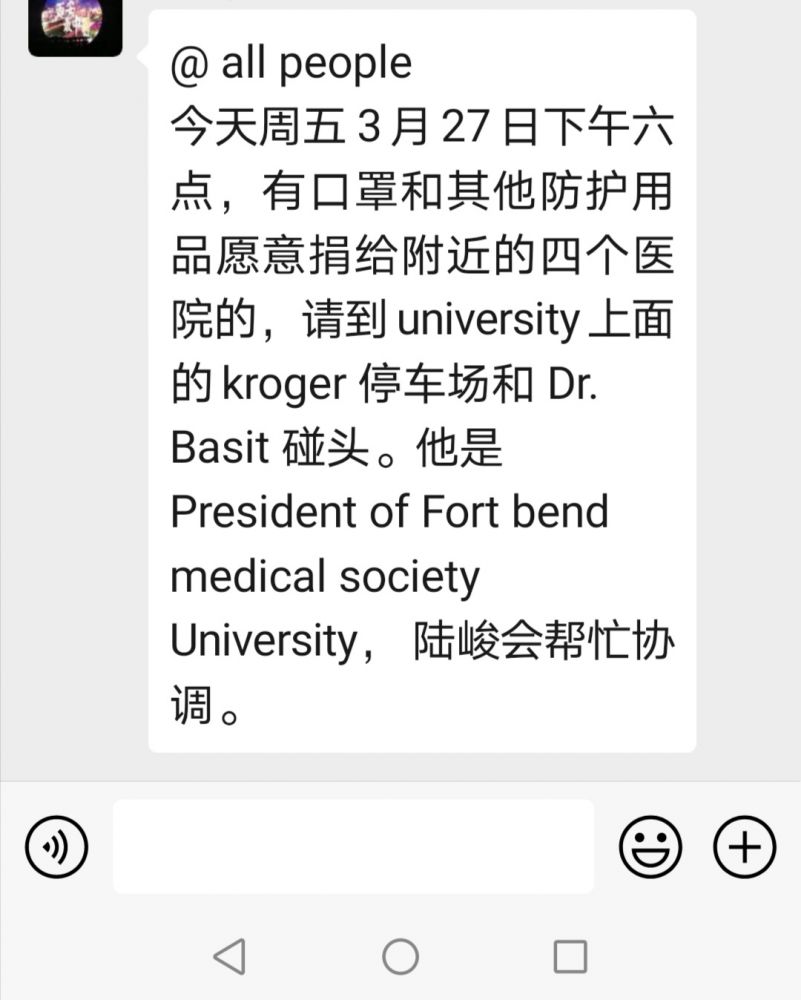 口罩缺,缺口罩,依然是最最严峻的问题。小到个人,大到各种华人团社。全民总动员,全力收集口罩。大家兵分两路,一路从中国找货源,一路招募捐赠。目标就是解决本地医疗急缺的问题。很多朋友自掏腰包购买口罩捐给当地的医院。最欣慰的消息,莫过于某某医院用上了我们的物资。武汉是人命,美国也是人命。祖国是我们的根,美国是我们的家。疫情之下,一个都不能少。海外华人受了很多委屈,饱受很多争议,但我们也是做事最多奉献最大的。等到抗疫结束之时,海外华人将是军功簿上最添彩的一笔。