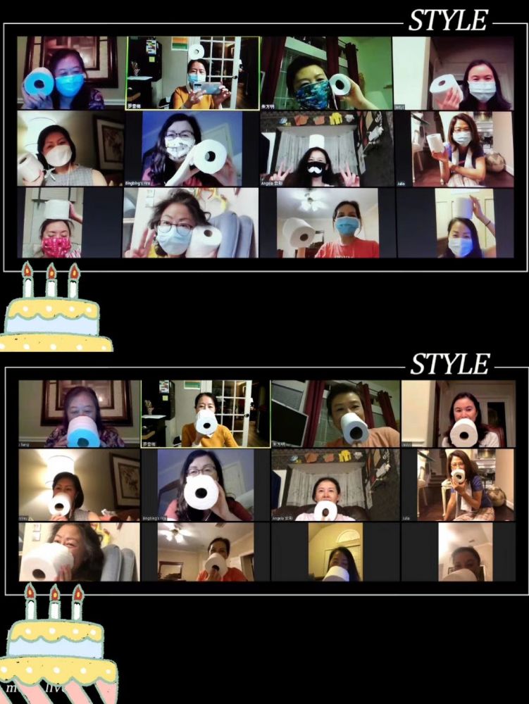 昨天看到一个朋友圈,是两位美女庆生的云现场。这就是当下的我们呀,居家但是不减快乐。朋友圈一派其乐融融的欢庆场面:“你过过这样的生日party吗?你吃过这样的生日蛋糕吗?你唱过这样的生日歌吗?你有过这样面对屏幕一个人傻唱傻笑自嗨的经历吗?疫情之下,劳动美女们的智慧无穷无尽。靓女村姑一如既往,美丽多汁,宅在家中的日子一样也能过得绚丽多彩。昨晚上为两位闺蜜举行了具有历史意义的生日云趴。别具一格,气氛犹如面对面一样的热闹,温馨。厕纸,口罩,Social distance也加入了我们生日云趴一起与生日女猪脚争宠,一起和美女们分享和制造快乐!这就是友谊,无论贫穷,富贵,无论健康,病毒,我们永远不离不弃。相信即使老年痴呆,生日云趴也会在人生长河里星星闪烁!感谢新冠病毒带给我们的快乐!”(来自snowmay的朋友圈)笑着笑着,我居然泪目了。多年以后的我们,回忆起今天的这一幕会是怎样的心情?为我们北美华人,为疫情笼罩下的这份豪情和快乐点赞。