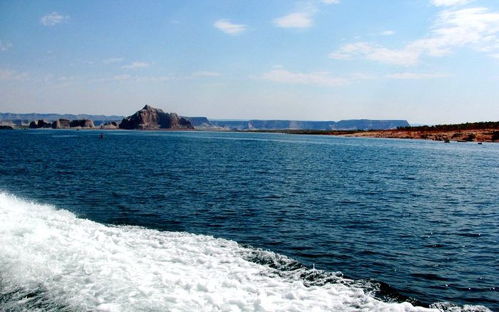 鲍威尔湖(Lake Powell)位于犹他州和亚利桑那州交界地带。它因筑坝而成,是美国第二大人工湖。除了发电之外,它还提供了居民和农业用水。它水岸线蜿蜒曲折,岩石陡峭,景色秀丽,是美国西部非常著名的旅游圣地。