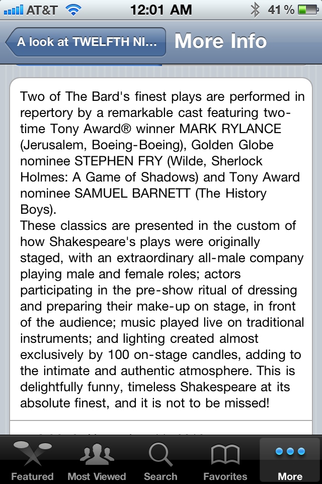 中国新年大年三十晚,我是在百老汇的Belasco Theatre 度过的,看莎士比亚的喜剧“第十二夜”。由Shakespeare's Globe of London演出。这是世界顶级的莎剧表演剧组。整个台上表演的全是男性演员,反串女角。