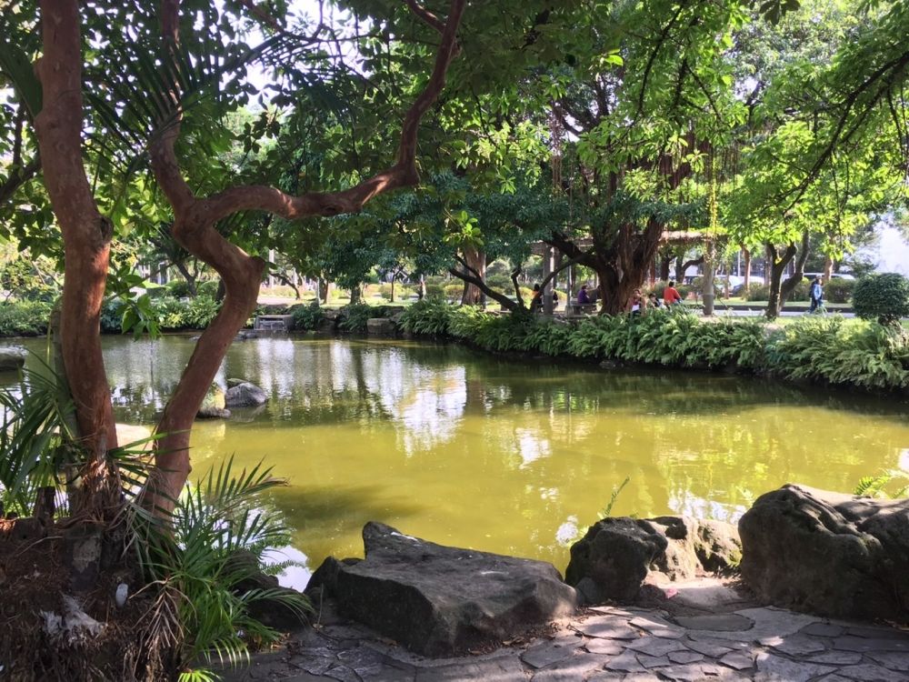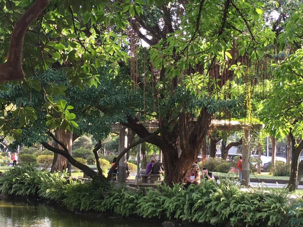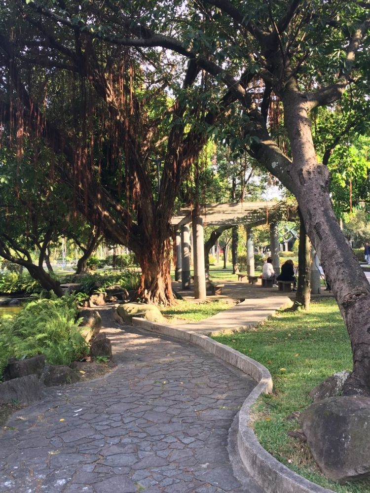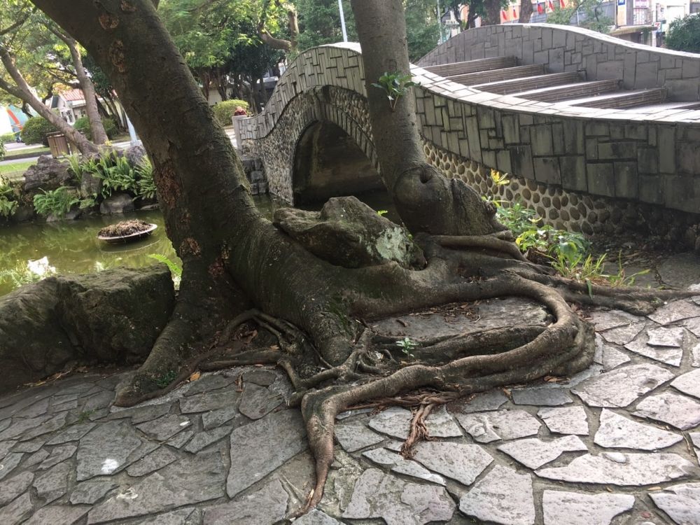 逛到国立台湾博物馆,没有进去,好像没什么有意思的展览。博物馆后面是二二八纪念公园,不大的一个园子,有两个小池塘,一片亚热带植物丛。人不多,一些老人,一些残障人士和护理,坐在树荫下打盹儿。阳光和煦,微风吹拂,一片安宁。