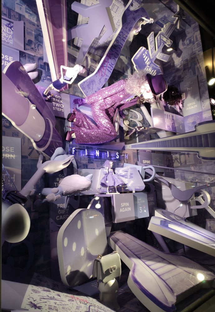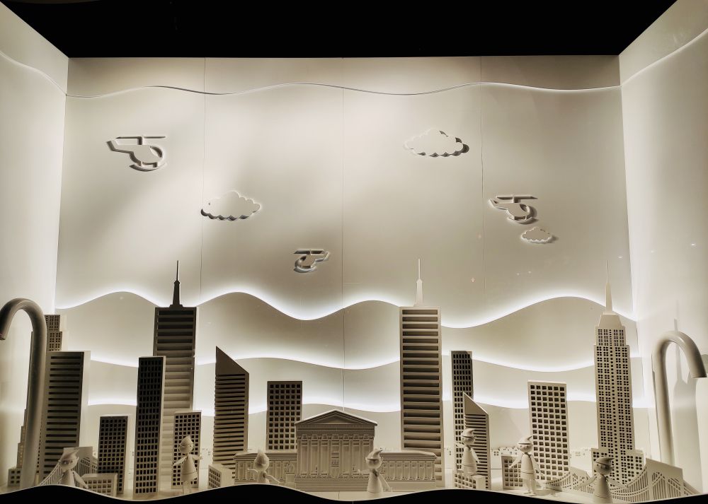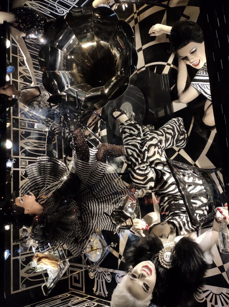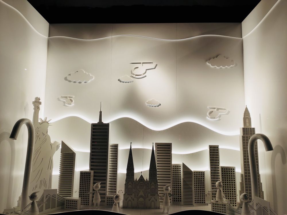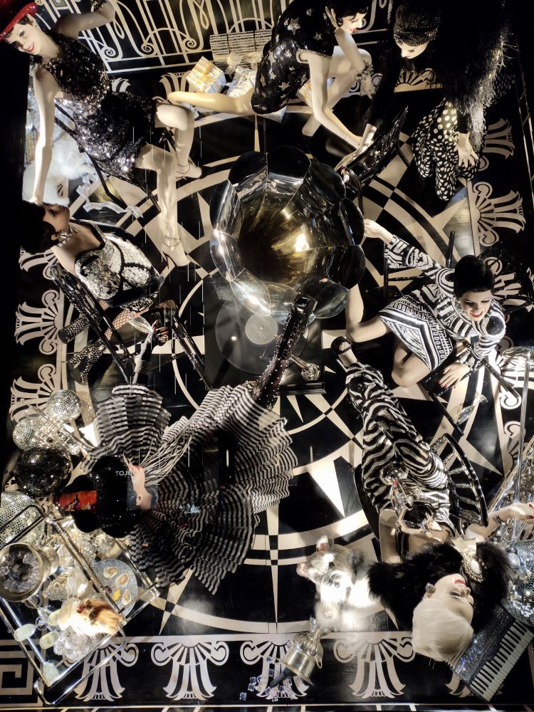 今年的橱窗布置很新奇,全是立体的俯视图,不仔细和换个角度看,不会发现里面的人体,因为你看到的都是脑勺。LOL。这个要现场看才能体会它的精美,因为是一个一个橱窗看过去的。贴图都挤在一起,完全不是现场看的感觉。