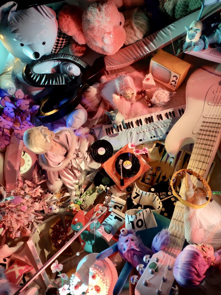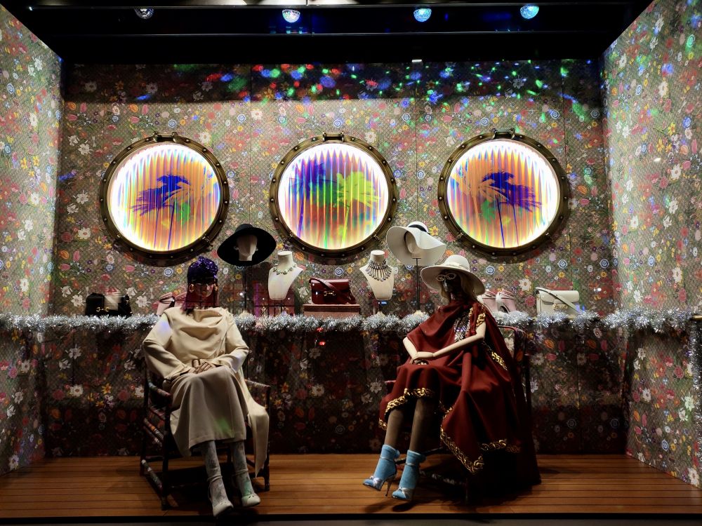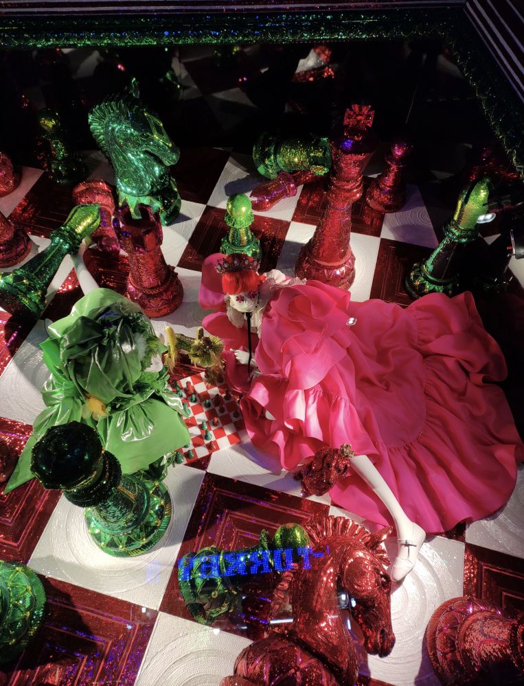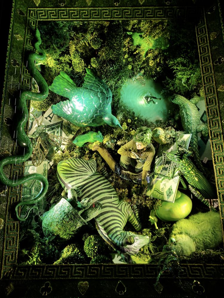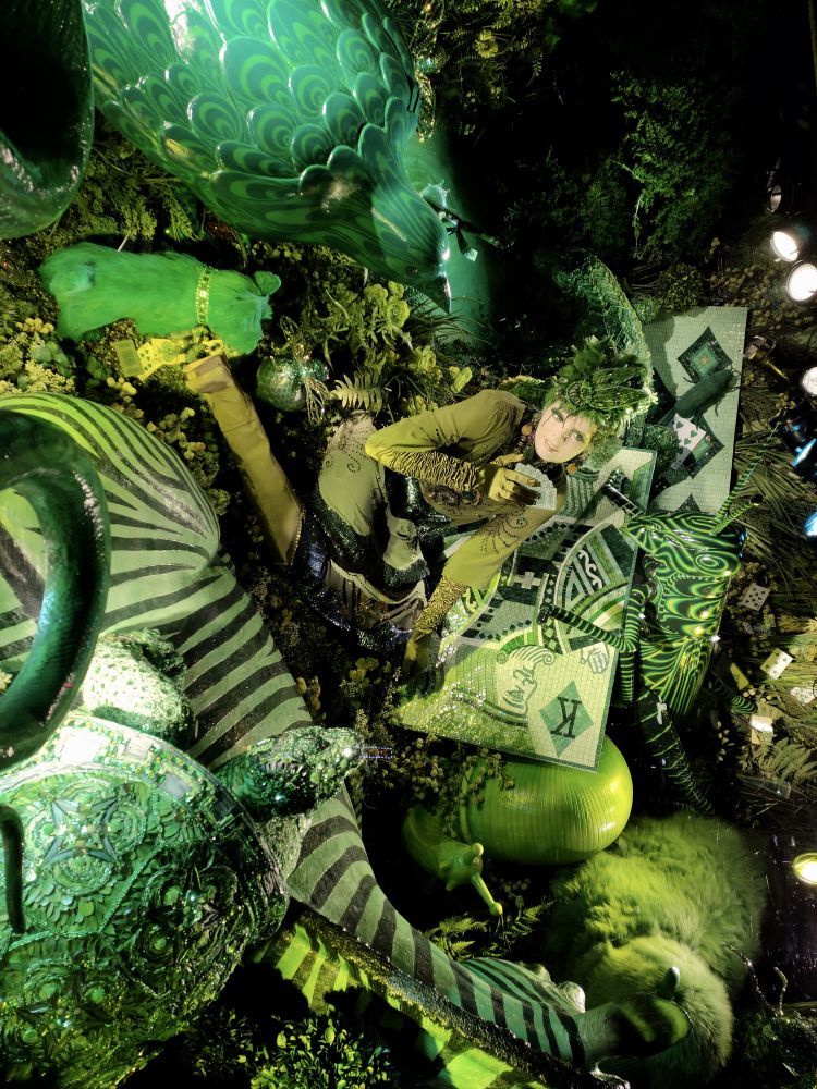 今年的橱窗布置很新奇,全是立体的俯视图,不仔细和换个角度看,不会发现里面的人体,因为你看到的都是脑勺。LOL。这个要现场看才能体会它的精美,因为是一个一个橱窗看过去的。贴图都挤在一起,完全不是现场看的感觉。