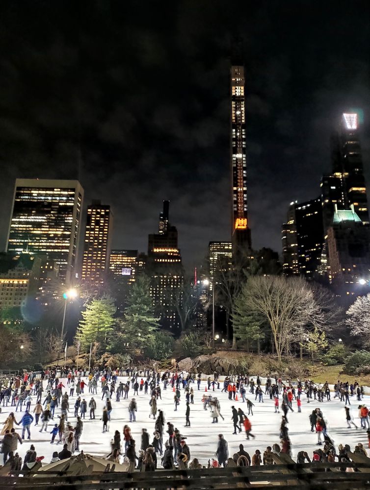 从东72街进入中央公园,快到中央公园南边时,经过溜冰场。这是无数电影里出现过的镜头: