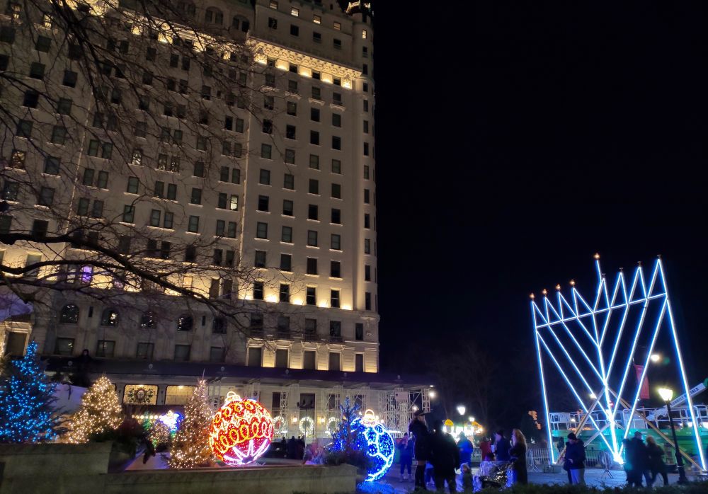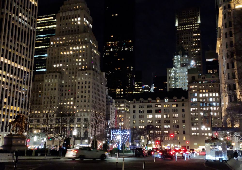 到了纽约才能切身感受犹太人在美国的势力和影响,只要有圣诞装饰的地方,必有犹太节日的装饰,缺一不可,否则要引起争议和混乱。我住的大楼和办公室大楼的门厅都是两种装饰齐放:
