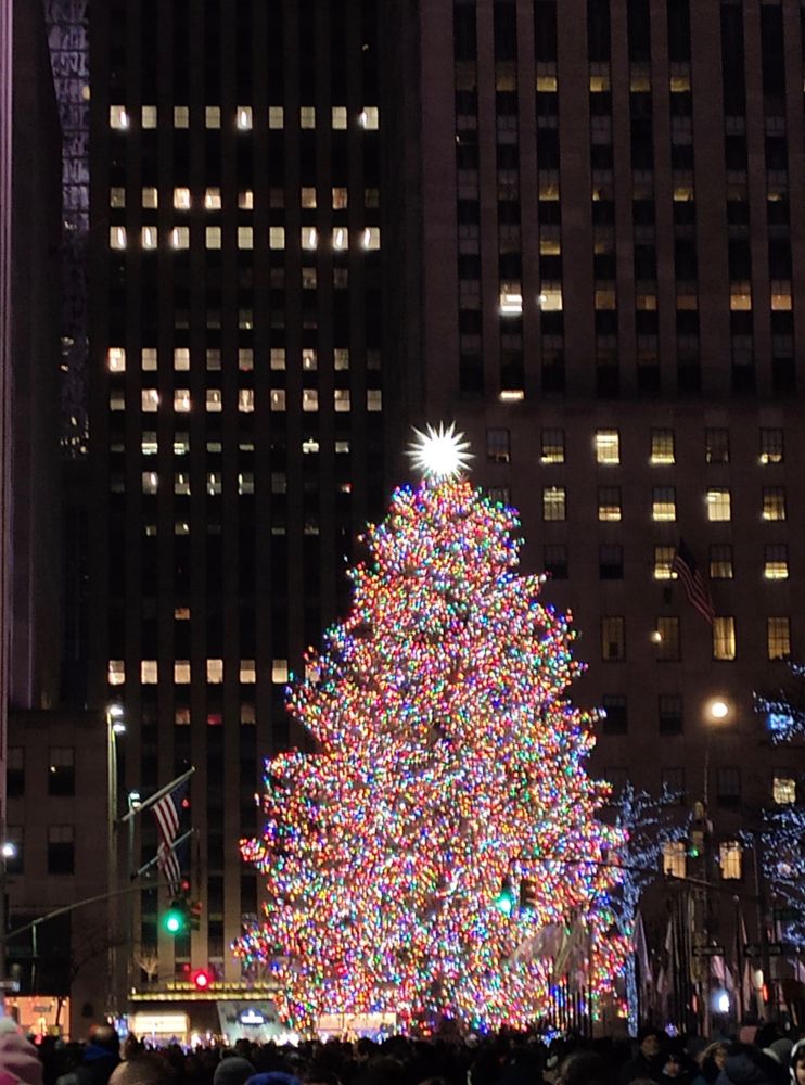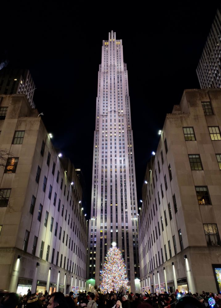 这个灯光秀的正对面就是洛克菲勒中心,著名的圣诞树就在那儿: