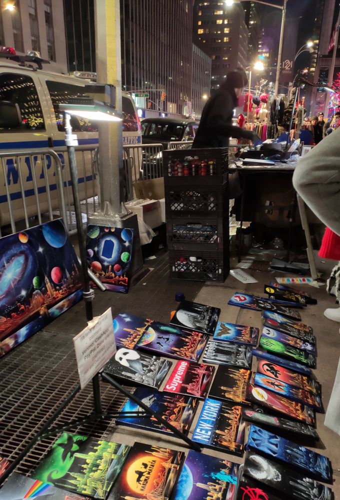 好玩的是在LV的店家门外,就是卖假LV包包的地摊: