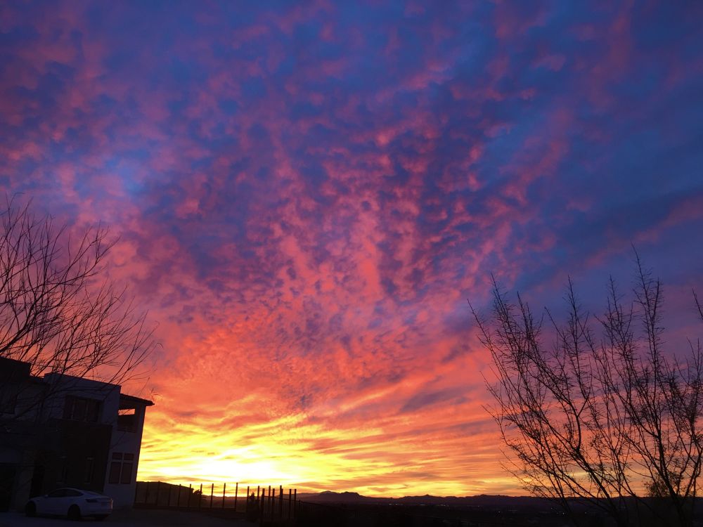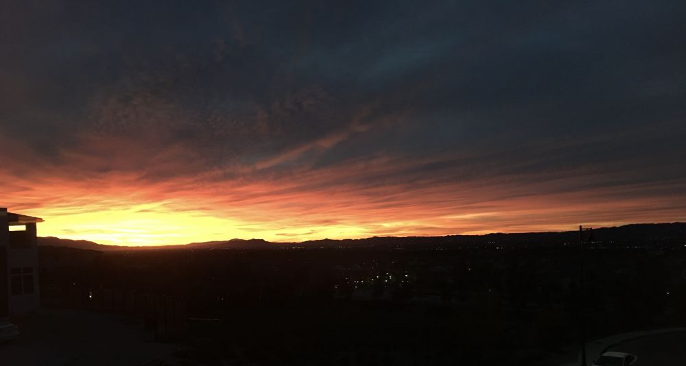 每天早晨起床的动力:看日出美景。今晨6:44-7:01太阳跳出地平线的一瞬间。#3-6偏紫色的是在室外拍的,#1-2、7-9是室内隔着玻璃拍的,色彩偏蓝。因为玻璃有反光,我从床上跳起出门拍,风大,冻死了!